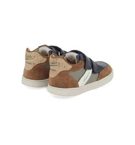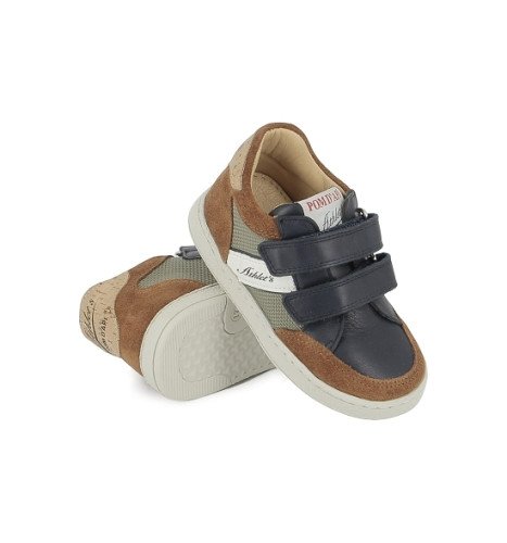 Cette basket premiers-pas, issue de notre collection Athlet’s, combine textile kaki, cuir lisse marine et cuir velours camel pour un look moderne et tout-terrain. Ultra légère, elle repose sur une semelle en caoutchouc souple qui accompagne naturellement le mouvement du pied.
