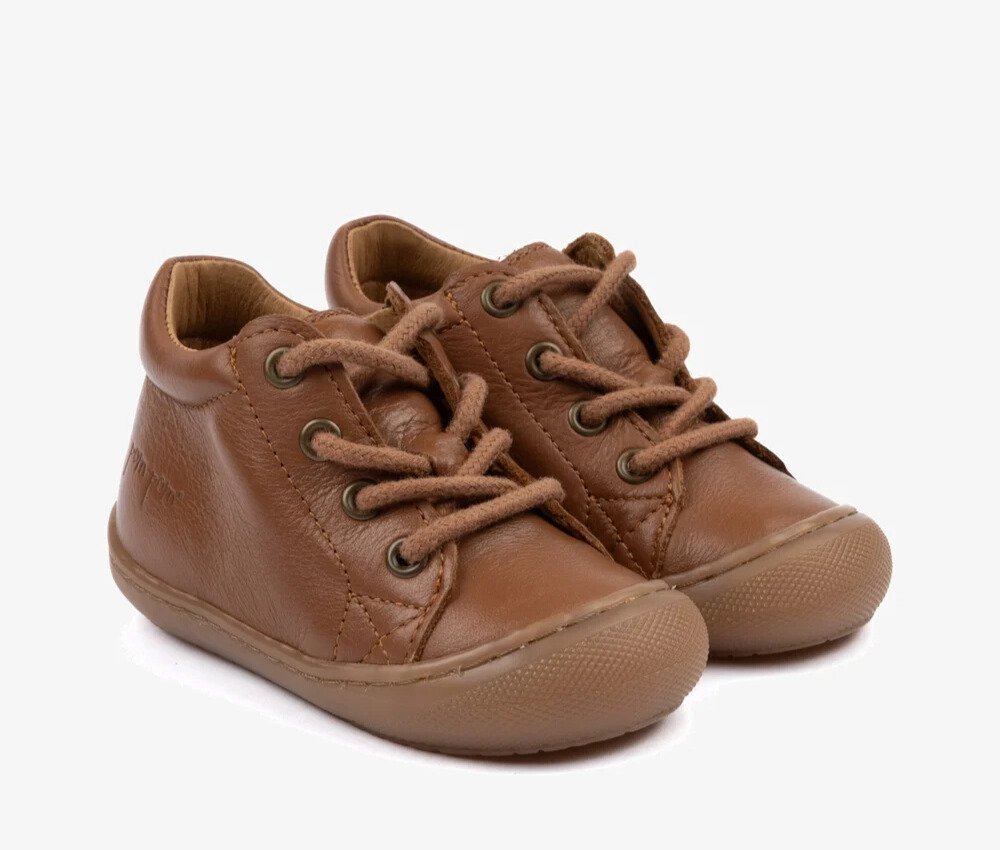 La Pom Pom First™ à lacets est la chaussure idéale pour accompagner les premiers pas : souple, confortable et parfaitement ajustée. Son contrefort renforcé stabilise le pied tout en assurant un maintien sûr, et sa semelle en caoutchouc, légèrement remontée à l’avant, protège la pointe contre l’usure.